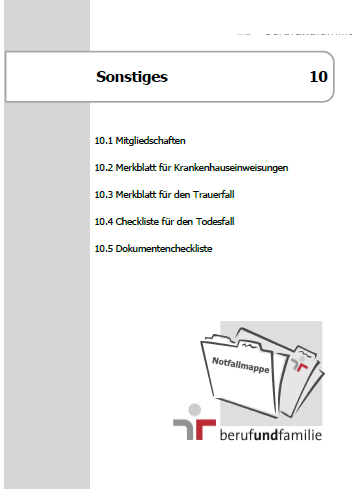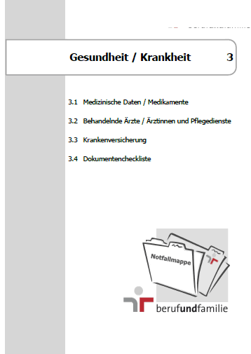 Mit dieser 66-seitigen Notfallmappe der berunfundfamilie Service GmbH verschaffen Sie sich und evtl. Ihren Angehörigen einen umfassenden Überblick über Ihre wichtigsten persönlichen Unterlagen - für alle Fälle.